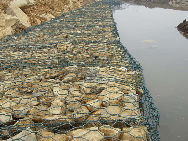 包塑石籠網(wǎng)護(hù)墊分表面金屬鍍層和表面PVC/PE涂層兩個(gè)大類(lèi)。使用的金屬線徑是根據(jù)六角形的大小而不同。生產(chǎn)過(guò)程是經(jīng)織網(wǎng),剪切,鎖邊,綁扎后制成石籠和護(hù)墊。
